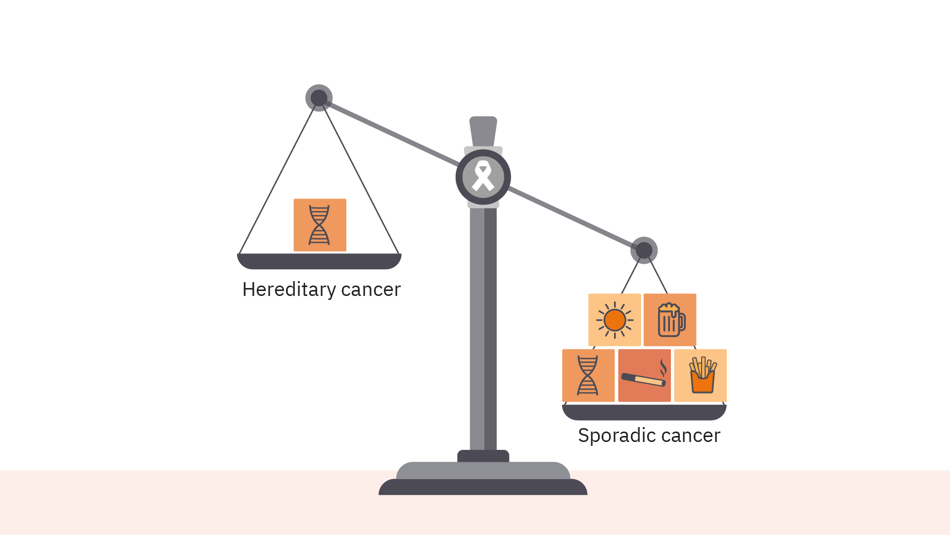 Around 5 to 10% of the cancers are caused by a genetic change inherited from one of the parents. In the hereditary cancer, as this type of tumor is known, the change which causes the disease is present in all the patient’s body cells, including eggs and sperm, and can also be transmitted to their children.
